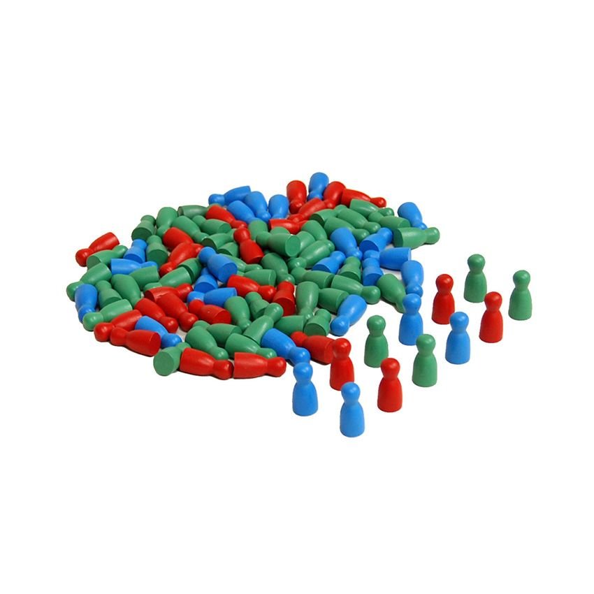 Los Peones Pequeños Montessori (también conocidos como skittles) se utilizan en distintos materiales de matemáticas, especialmente en ejercicios de división y factorización.