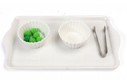 El niño usa pinzas pequeñas para trasladar objetos (como pompones o cuentas) de un recipiente a otro. Este ejercicio fortalece los músculos de la mano y promueve la coordinación y el control del movimiento. Es una actividad ideal para la preparación indirecta de la escritura.