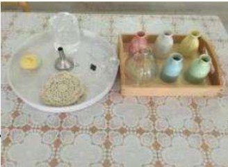 En esta actividad, el niño llena una jarrita con agua, corta o selecciona flores y las dispone en floreros de manera equilibrada. Aprende a observar proporciones, colores y formas, cultivando el gusto por la belleza y el cuidado del entorno. Además, practica movimientos controlados al verter el agua y manipular elementos frágiles, reforzando la motricidad fina y la concentración.