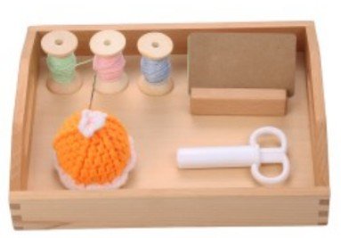 Propósito directo: Enseñar al niño a enhebrar y coser utilizando aguja y lana.