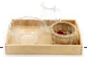 Material: Bandeja, recipiente con agua, objetos de distintos materiales (madera, metal, plástico, corcho, piedra).