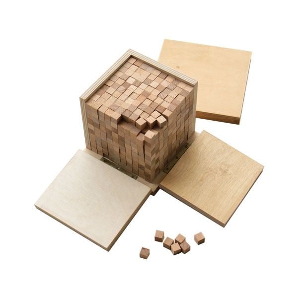 Este material ayuda al niño a comprender la noción de volumen de forma sensorial y concreta. A través de la manipulación de los pequeños cubos, los estudiantes pueden construir el cubo de 1000 unidades, comprendiendo cómo se relacionan las unidades, decenas, centenas y millares en tres dimensiones.