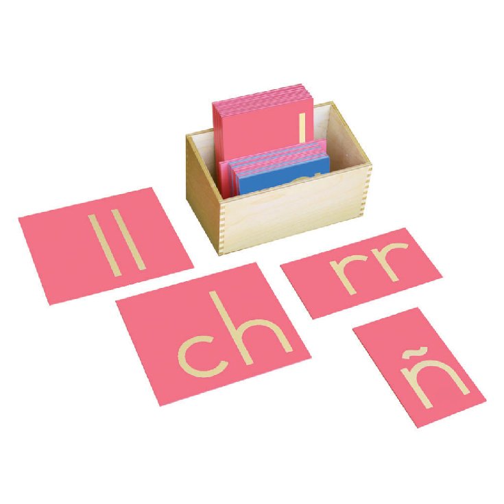 El set incluye una caja de madera que permite mantener las letras ordenadas y fácilmente accesibles para la práctica individual o guiada.