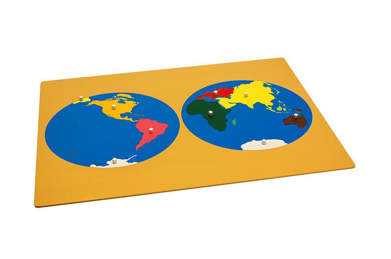 En el ambiente Montessori, estos rompecabezas se presentan de lo concreto a lo abstracto: primero el mapa mundial y luego los de cada continente o país, acompañados de nomenclaturas y actividades de clasificación que refuerzan el aprendizaje del nombre y ubicación de cada región.