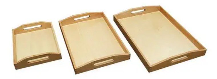 Este set incluye tres bandejas individuales de diferentes tamaños, ideales para organizar actividades de Vida Práctica o Sensorial. Su diseño ergonómico permite al niño transportar materiales con facilidad, reforzando la coordinación y el sentido del orden en el ambiente preparado.
