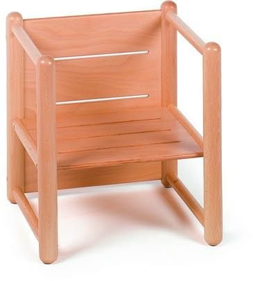 La silla multifunción de madera de haya es un elemento esencial del ambiente Montessori para la primera infancia. Su diseño estable y ergonómico permite utilizarla en distintas posiciones y alturas (16 cm, 21 cm y 30 cm), adaptándose al crecimiento del niño. Puede funcionar como silla, mesa auxiliar o soporte para actividades prácticas. Gracias a su peso liviano y sus bordes redondeados, el niño puede manipularla con seguridad, promoviendo su independencia en el uso del mobiliario. Fabricada en madera natural de alta calidad, sin barnices tóxicos, contribuye a un entorno cálido y estéticamente armonioso, característico de los espacios Montessori.